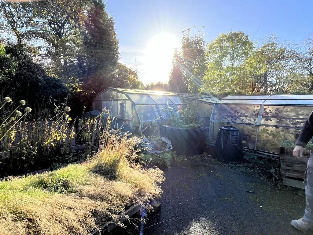 The site currently accommodates a collection of polytunnels, a glazed greenhouse, and tarmacked external areas, but lacks suitable workshop/education space, welfare facilities, accessible parking arrangements, and sufficient storage.